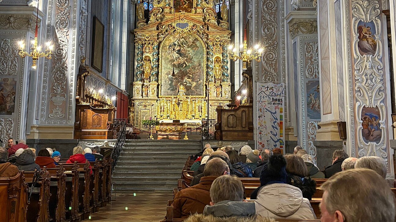 Nach dem Mittagessen ging es weiter ins Benediktinerstift Göttweig. In der beeindruckenden Stiftskirche fand ein besinnliches Adventkonzert statt, anschließend wurde der stimmungsvolle Adventmarkt im Stift besucht.