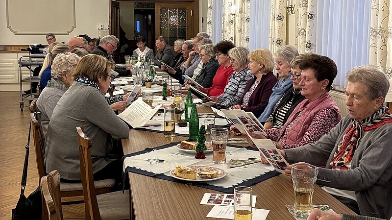 Bei Kaffee und Kuchen, heiteren Texten und dem gemeinsamen Singen von Weihnachtsliedern stand die Gemeinschaft im Mittelpunkt.
